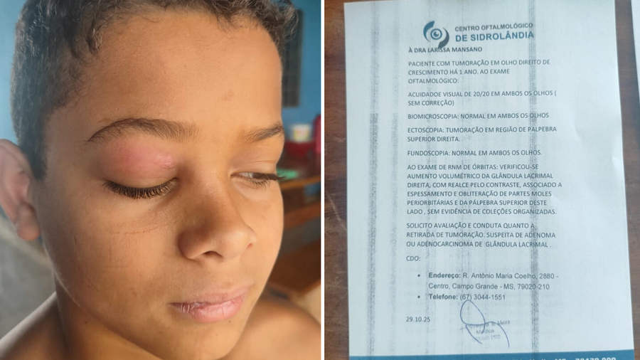 Em Sidrolândia, mãe pede ajuda para custear cirurgia e retirar tumor no olho do filho de 11 anos